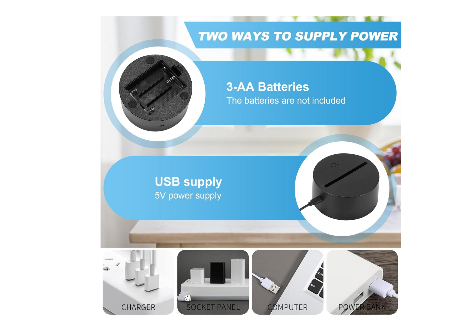 USB powered (cable included) or use with 3 x AA batteries (not included)