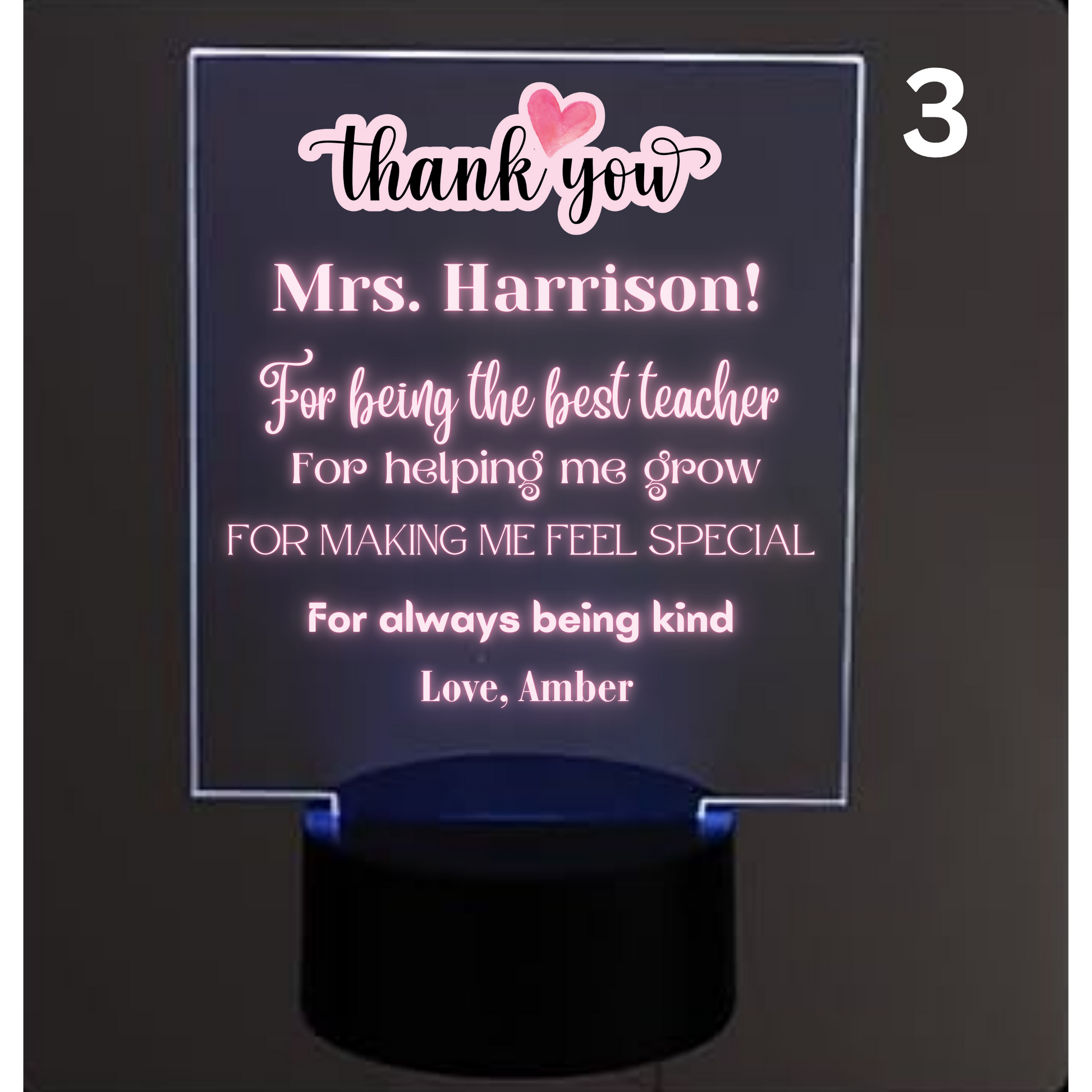 Personalised LED Acrylic Night Light – Teacher Gift - Designed by Printfield